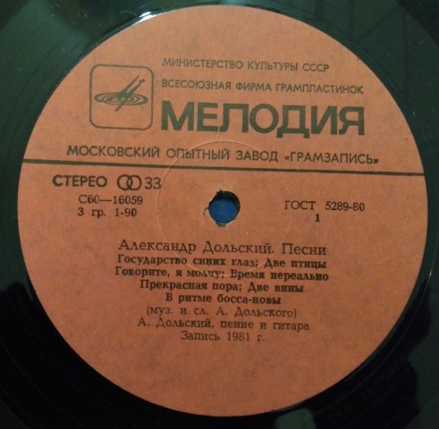 Альбом: Песни ; Изготовлено: USSR ; Релиз: 1981 ; Издание: ; Вин/Обл: VG/VG+