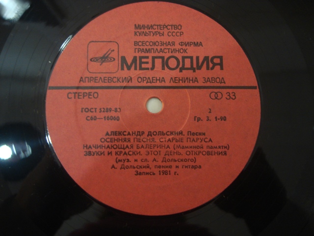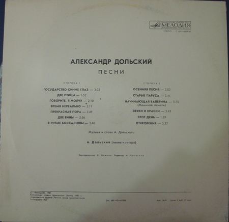 Альбом: Песни ; Изготовлено: USSR ; Релиз: 1981 ; Издание: ; Вин/Обл: NM/NM