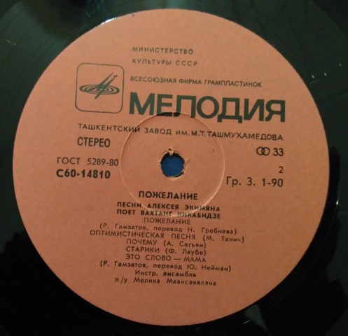 Ставка НДС:| Артикул: | Лейбл: Мелодия ; Каталожный №: 33 С 60—14809-10 ; Вин/обл: VG+/VG |