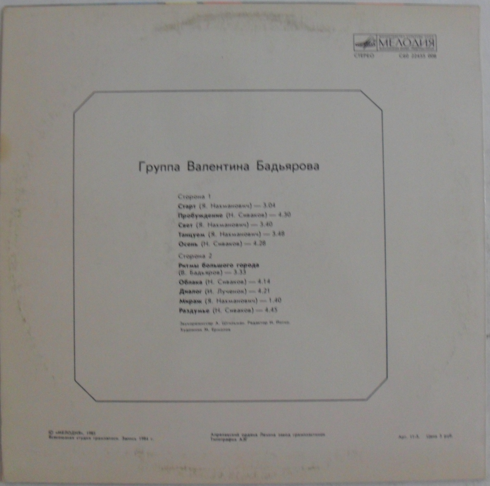 | Ритмы большого города | 3:33 |
