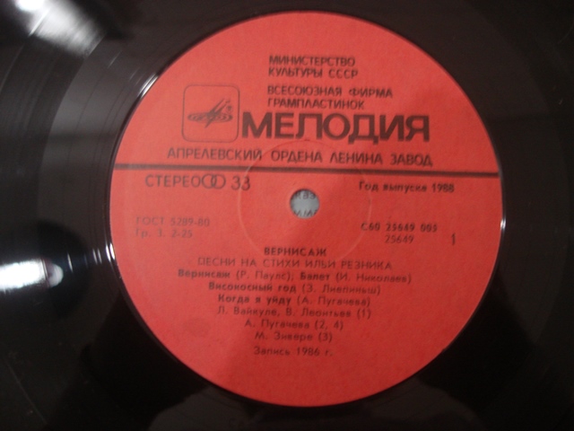 Альбом: Вернисаж ; Изготовлено: USSR ; Релиз: 1987 ; Издание: ; Вин/Обл: NM/NM
