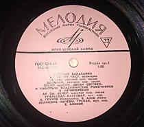 Альбом: Russian Balalaika ; Изготовлено: USSR ; Релиз: ; Издание: ; Вин/Обл: VG+/G+