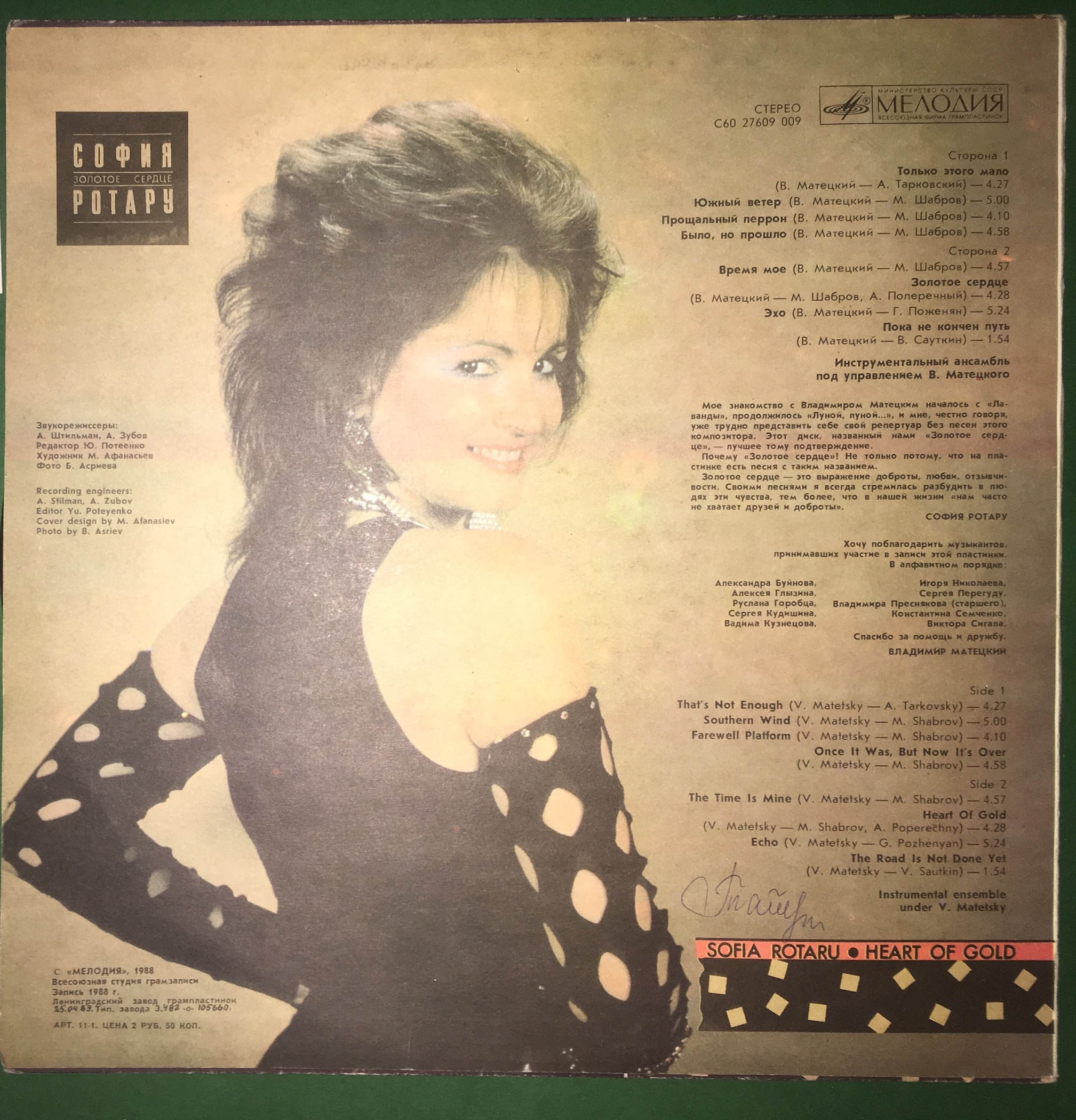 Альбом: Золотое Сердце ; Изготовлено: USSR ; Релиз: 1988 ; Издание: ; Вин/Обл: VG/VG+