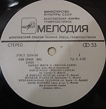 Ставка НДС:| Артикул: | Лейбл: Мелодия ; Каталожный №: 6019439002 ; Вин/обл: NM/VG+ |