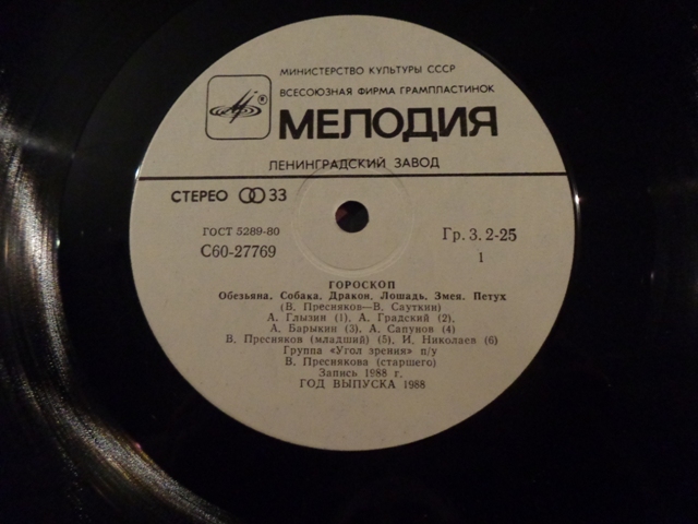 Альбом: Гороскоп (Вокальная Сюита) ; Изготовлено: ; Релиз: 1988 ; Издание: ; Вин/Обл: NM/VG+