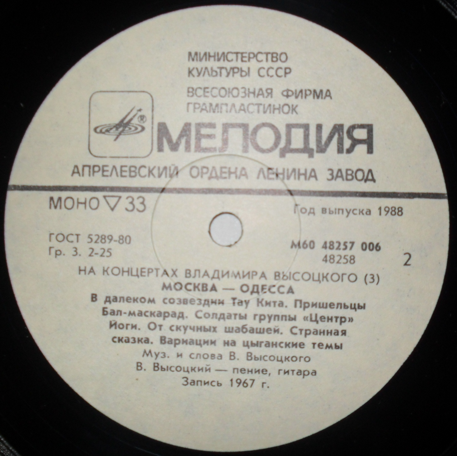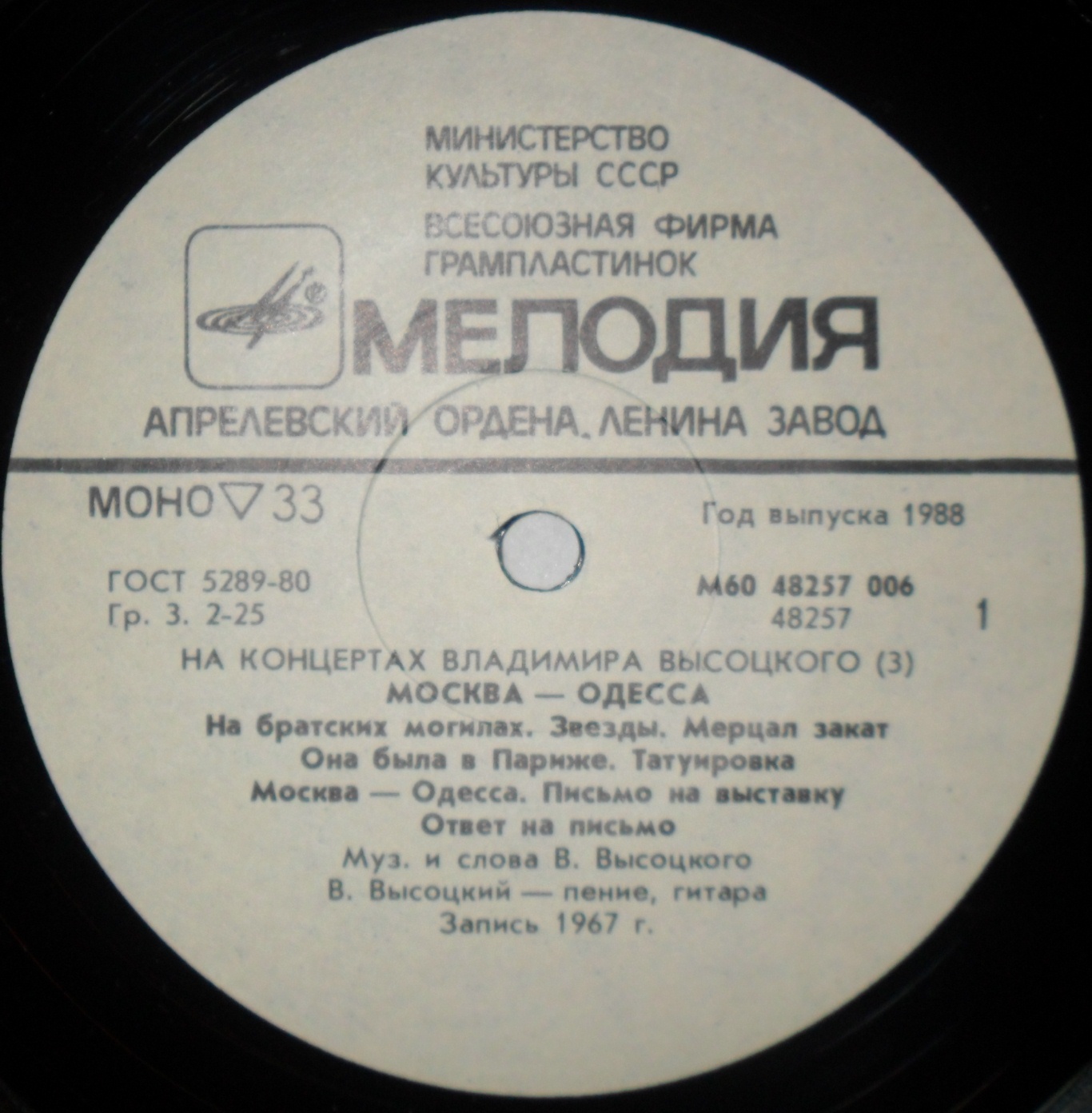 Альбом: 3 Москва - Одесса ; Изготовлено: USSR ; Релиз: 1988 ; Издание: ; Вин/Обл: VG+/VG+