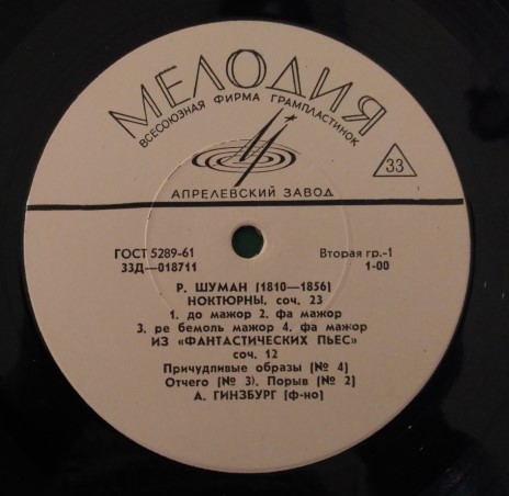 Альбом: Шесть пьес ; Изготовлено: USSR ; Релиз: ; Издание: ; Вин/Обл: VG/-