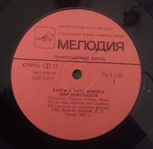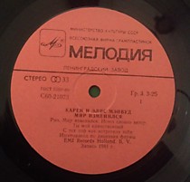 Альбом: Мир Изменился ; Изготовлено: USSR ; Релиз: 1986 ; Издание: ; Вин/Обл: VG+/NM