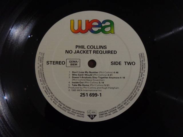 Альбом: No Jacket Required ; Изготовлено: Europe ; Релиз: 1985 ; Издание: 1985 ; Вин/Обл: VG+/NM