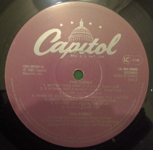 Альбом: Phil Everly ; Изготовлено: Holland ; Релиз: 1983 ; Издание: 1983 ; Вин/Обл: NM/NM